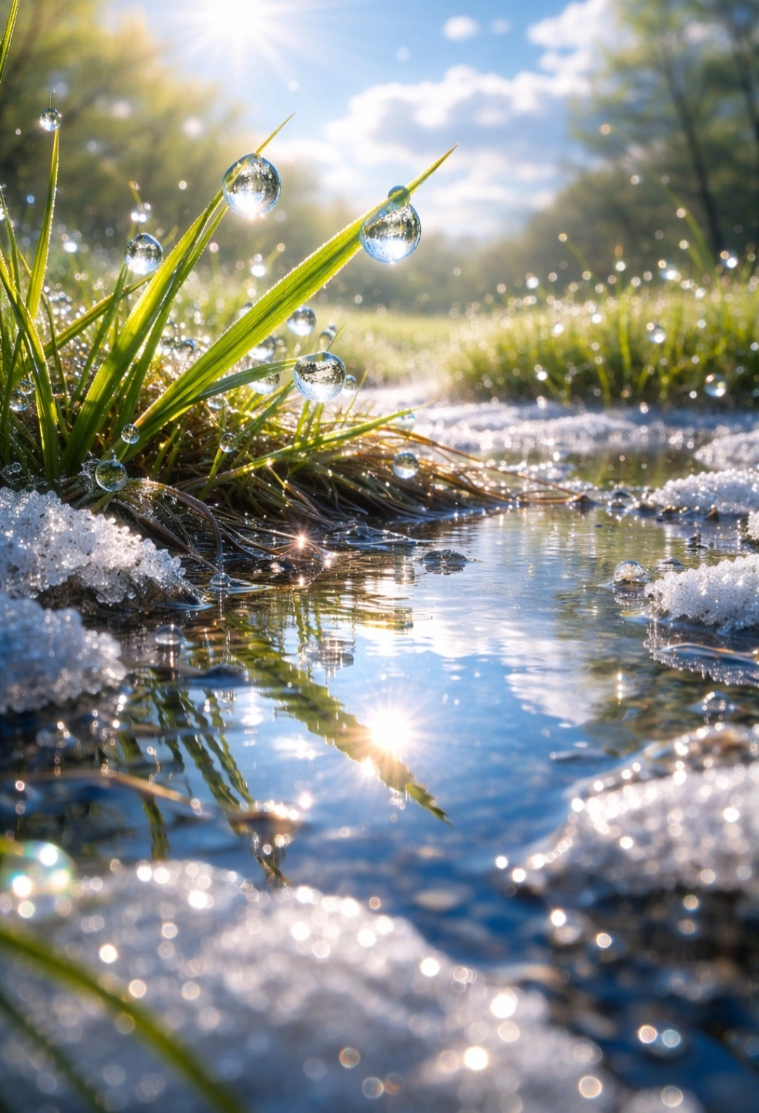 아침 이슬 맺힌 풀 위에