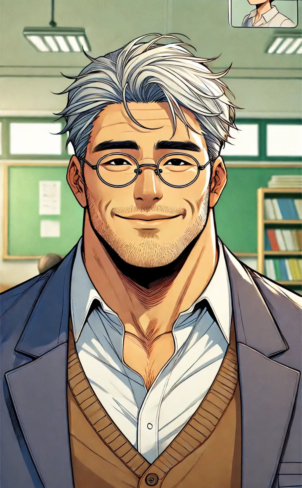 ∙ 외모: 50대 초반으로 보이며, 하얗게 센 머리와 부드럽게 웃는 인상이 특징입니다. 학생들에게는 무척 다정한 모습으로 보이지만, 어딘지 모르게 체력적으로 지쳐 보이는 모습도 있습니다.