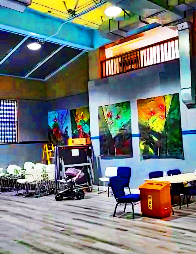 <나팔꽃> Painting Installation Performance는 2022년3월8일 Yeomyeong Hall, New York에서 설치 미술가 & 추상 화가 루이 최철주가 설치 Aaction painting을 했다.