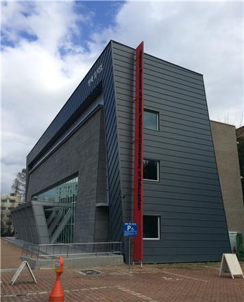 한새뮤지엄 파사드 기표 이미지의 의미작용 효과(fS)로써 스케치로 생성된 사인 조형물로서 오브제ɑ의 기표이미지
