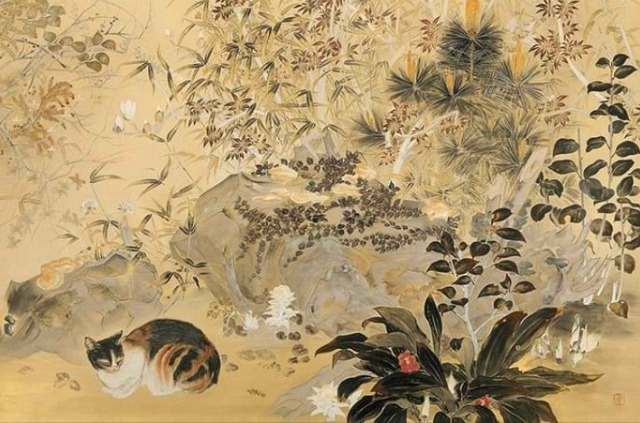 Tomiko Kikuzawa, A cat painting in a spring garden, Image Source: Facebook