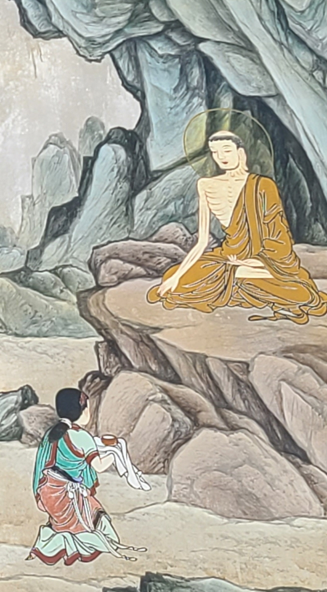 붓다는 고행으로 몸이 쇠약해져 거의 죽음 상태에 이르렀을 때, 어는 소녀의 우유 한그릇을 공양받고 소생하였다