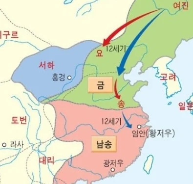 남송은 12세기 초 금나라의 침입으로 멸망한 송나라 후예들이 양쯔강 이남으로 이동하여 세운 남쪽의 송나라 정권을 말한다