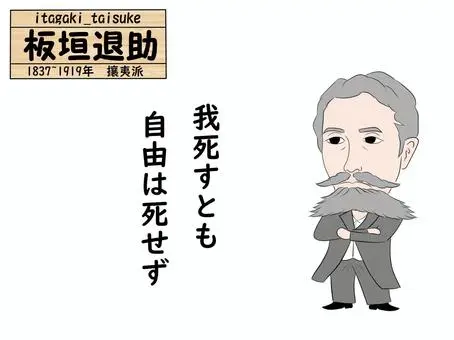 "나는 죽어도 자유는 죽지 않는다"는 발언으로 자유민권운동의 상징이 되었다