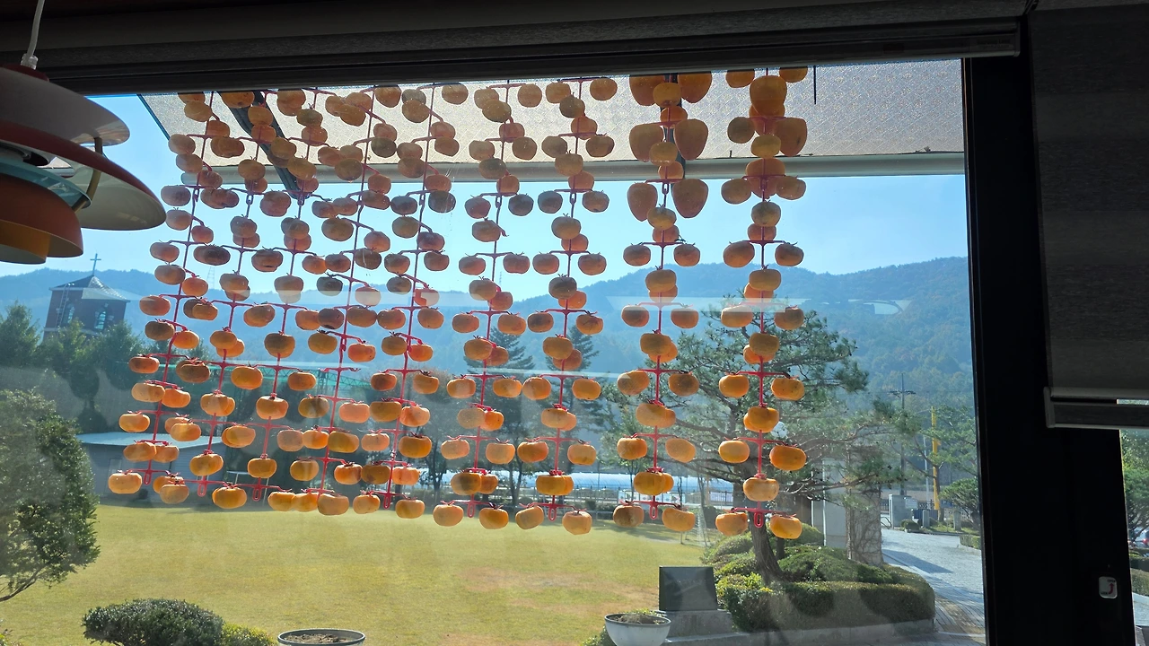 창밖으로 시선을 돌리니 학교 감나무에 주황빛 감이 주렁주렁 매달려 있다.