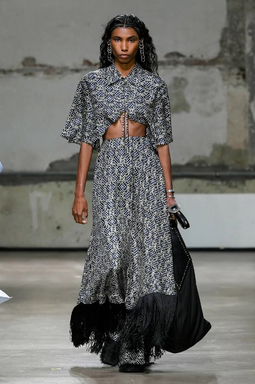 또 다른 핫 키워드인 프린지와 언발런스 스커트와 함께