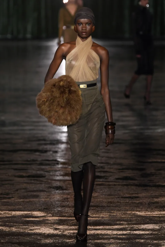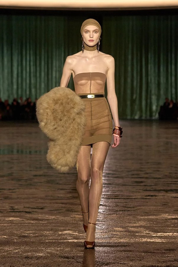 단연 눈에 띄는 건 브라운 컬러와 ‘시어(Sheer)’ 소재.