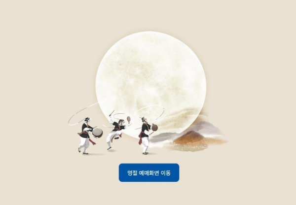 최근 폰 앱으로만 접속해서 데스크톱 브라우저 접속은 간만이라 정확한 url이 기억나지 않아, 구글링 링크를 타고 들어갔다. 진입한 화면은 이미지와 '명절 예매화면 이동'이라는 텍스트로 구성된, 그동안 보지 못했던 명절 기차표 예매 화면이다. 쎄한 느낌으로 기다리고 있는데 아무런 반응이 없어 다른 검색 결과를 클릭했더니, [명절 승차권][평상시 승차권]으로 구성된 익숙한 화면으로 진입했다.