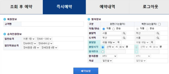 코레일로 구글링 해서 진입한 명절표 예매 화면.