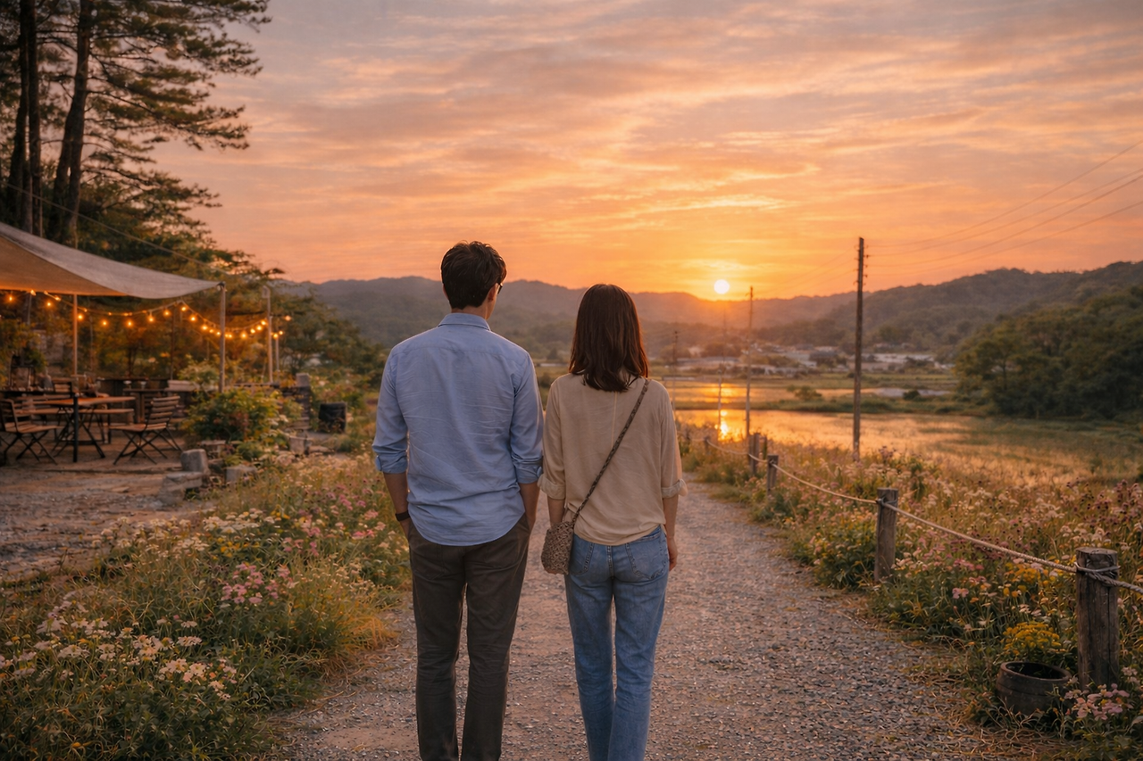 두 사람은 카페를 나와 천천히 시골길 을 걷기 시작했다.