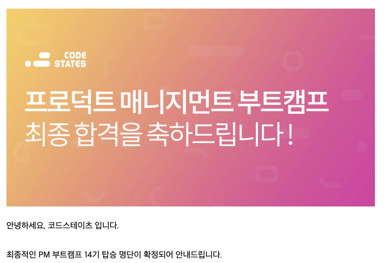 꽤나 어려웠던 수강 신청 과정을 거쳐서, 합격일지 불합격일지 조마조마했던 시간을 거쳐서, 당당하게 14기 수강생이라는 타이틀을 얻어냈다. 신청하기 전까지 이런저런 백그라운드가 있었지만, 다들 그건 궁금하지 않으실 테니 생략하고, 나는 PMB에 합류하기가 꽤 간절했다. <프로덕트 매니저> 가 되기 위해서 어떻게 해야 할지 도무지 감이 잡히지 않았기 때문이다. 책을 읽을까? 강의를 들을까? 짧은 시간 많은 고민 끝에 내린 결론이 부트캠프였기 때문에, 나는 사실 코드스테이츠에게 많은 기대를 했었다.그러니까, 마치 이 부트캠프를 수료’만‘하면 멋진 PM이 되어있을 것만 같은, 그런 환상.