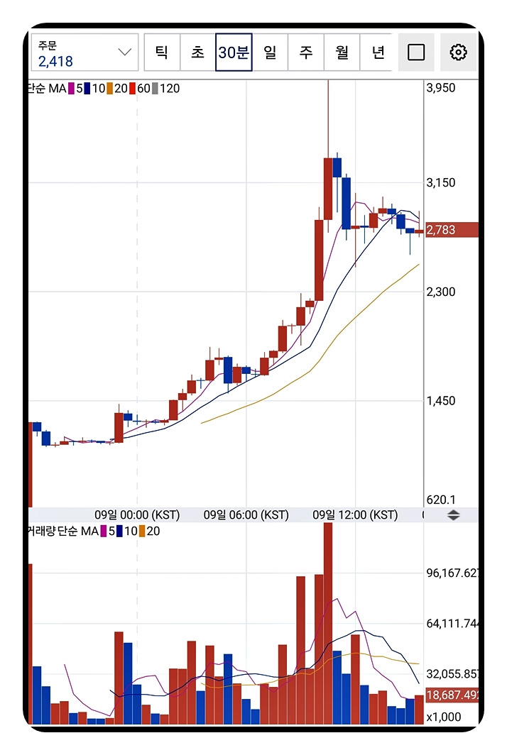 3. 매집으로 코인 가격이 급격히 오르면 개미들이 꼬인다는 걸 세력은 안다.