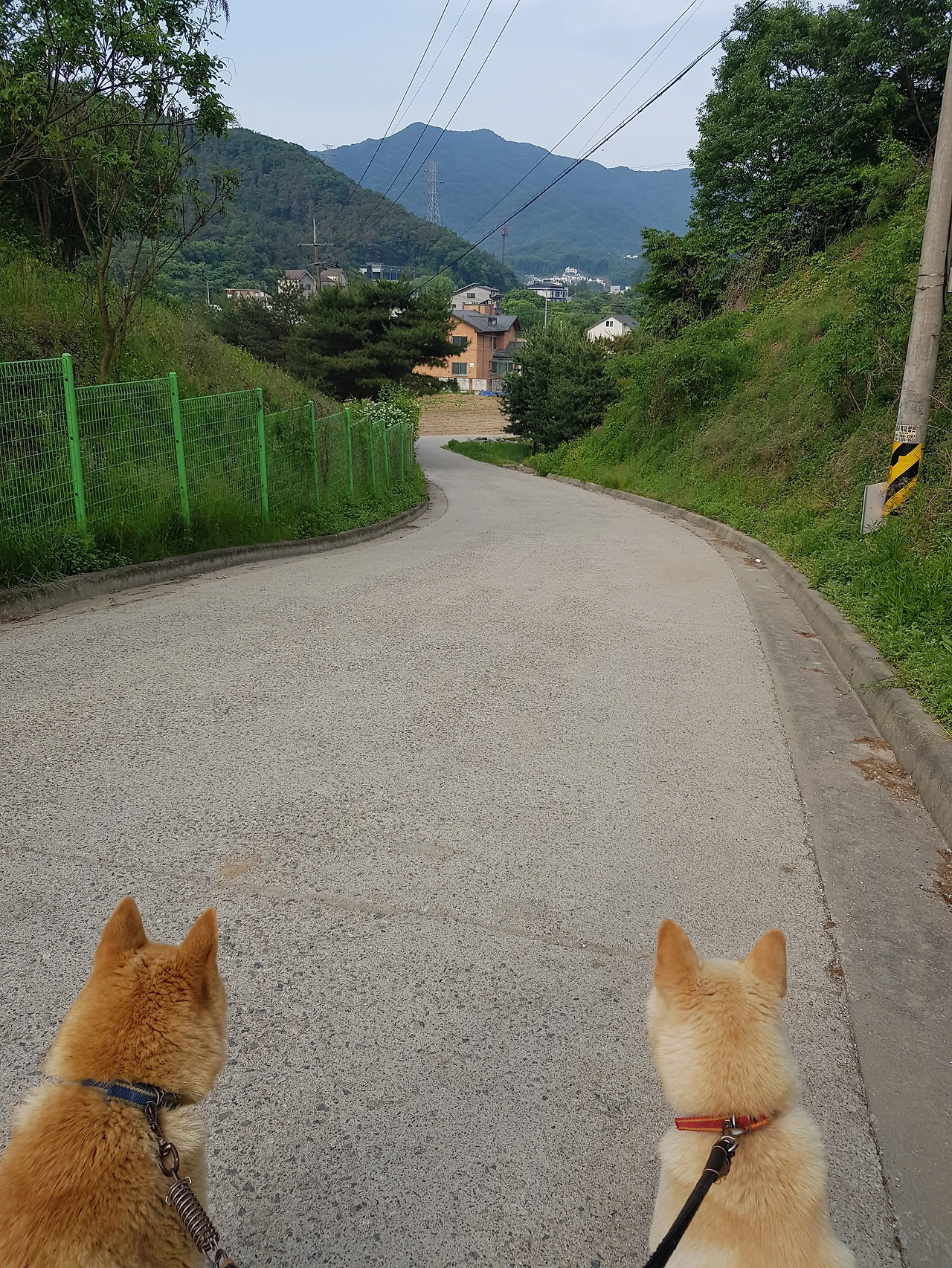 늘 그렇듯 나의 두 마리 진돗개와 새벽 산책을 마무리하며 내려가던 중 목줄을 질질 끌며 그 집개가 홀로 뛰어 내려오고 있었다.