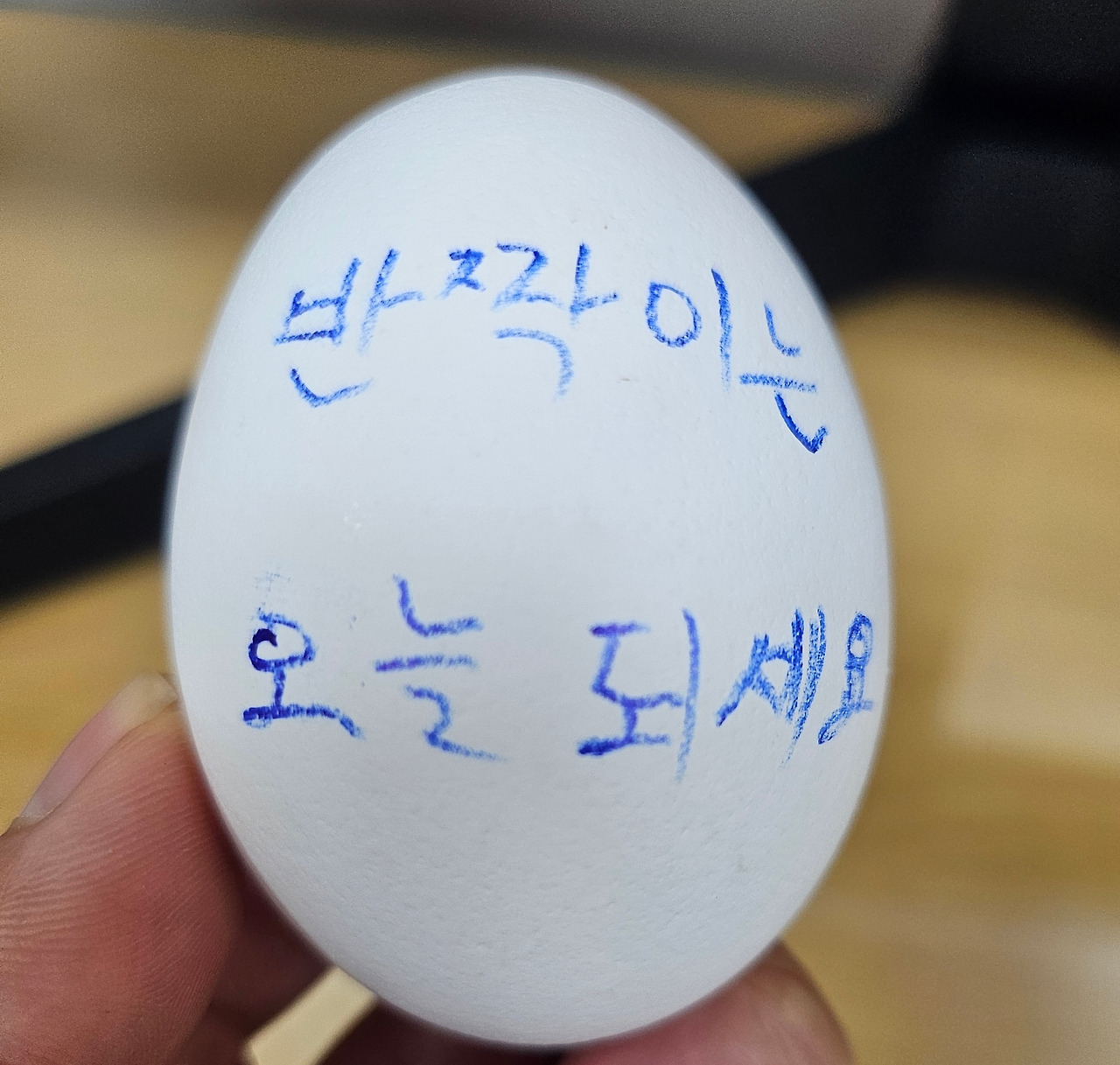 "원감님 신학기라 힘드시죠. 간식으로 삶은 계란 좀 가져왔어요. 먹고 힘내세요!"