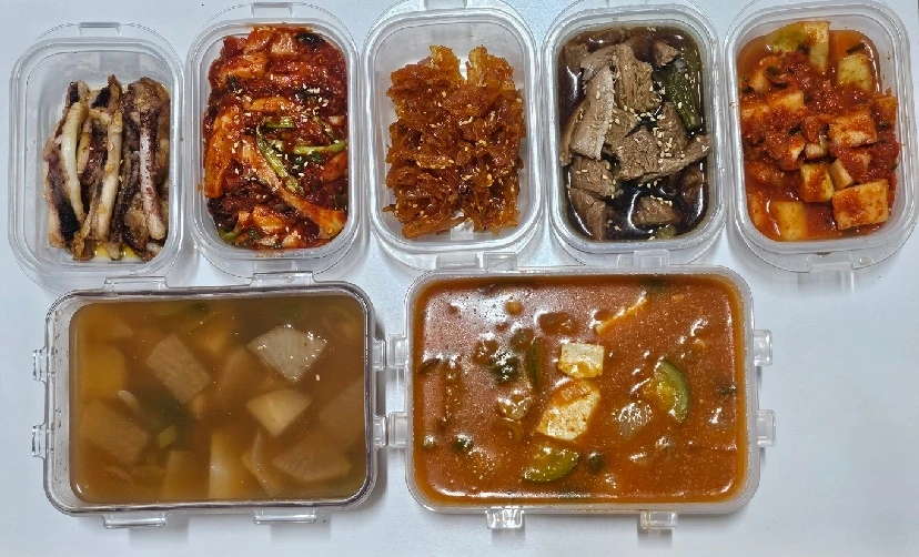 다시 도시락을 준비하게 되었답니다. 이 작은 일상이 이렇게 소중하고 귀한지 이제야 알게 되었습니다. 아직 예전에 몸으로 돌아간 건 아니지만 아이들과 저를 위해 다시 직장으로 출근하는 신랑을 위해 오늘은 하루 종일 반찬을 준비했답니다. 돼지고기 장조림, 명엽채 볶음, 오징어 튀김, 반찬가게 홍어무침, 오징어 뭇국, 고추장찌개 솜씨 좀 내보았습니다.