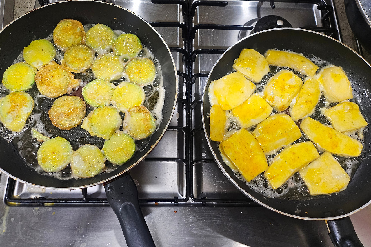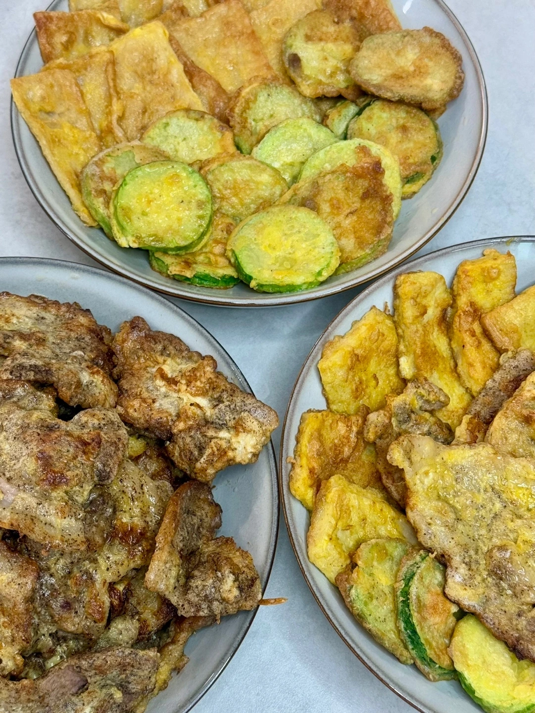 어묵은 살짝 따뜻한 물에 넣었다가 건져내고, 계란물에 적셔 부쳐야 촉촉하면서도 담백해요. 호박은 부침가루와 계란물을 입혀야 바삭한 식감이 살아나고, 새송이버섯은 부침가루에 카레가루를 살짝 섞어야 깊은 풍미가 더해진답니다.