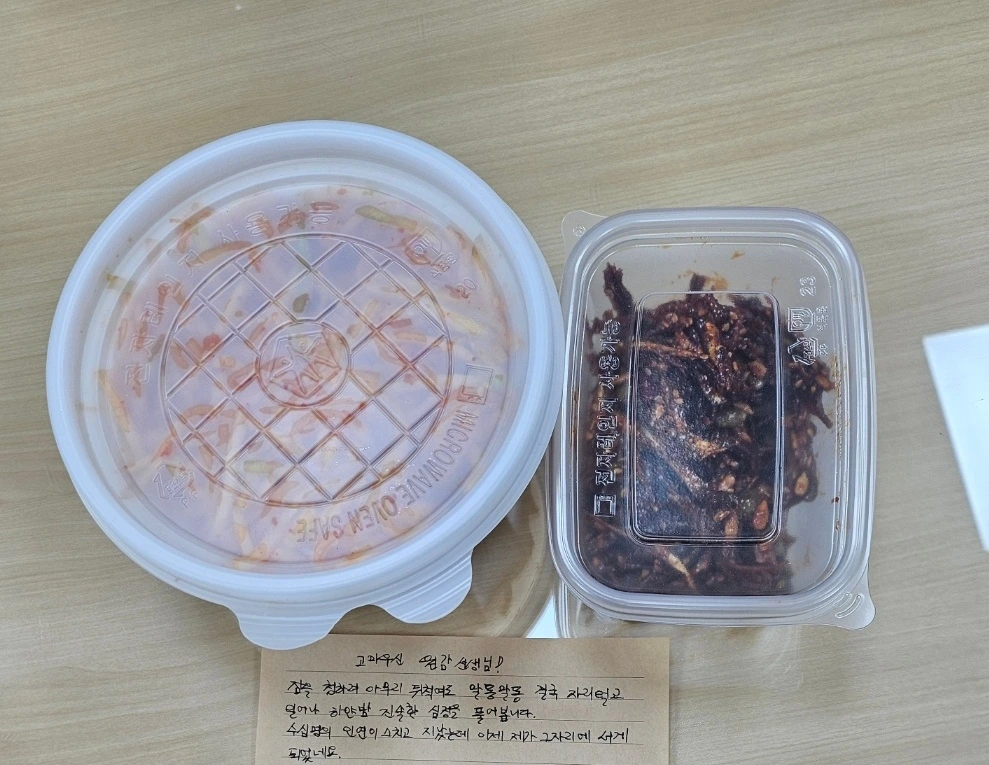 선생님의 반찬에는 응원의 영양제가 듬뿍 담겨 있었습니다. 그렇게 선생님의 따뜻한 손길을 받으며 하루하루 버틸 힘을 얻었고, 서로 기대어 어려운 날들을 견뎌낼 수 있었습니다.