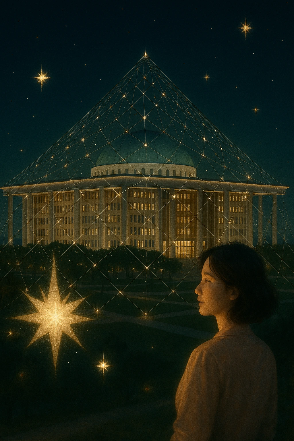 별망 프로젝트의 상징성과 정치적 맥락: 2024년 겨울, 계엄 해제. 그로부터 1년 뒤, 2025년 12월 4일 국회 상공에서 별망이 점등된다.