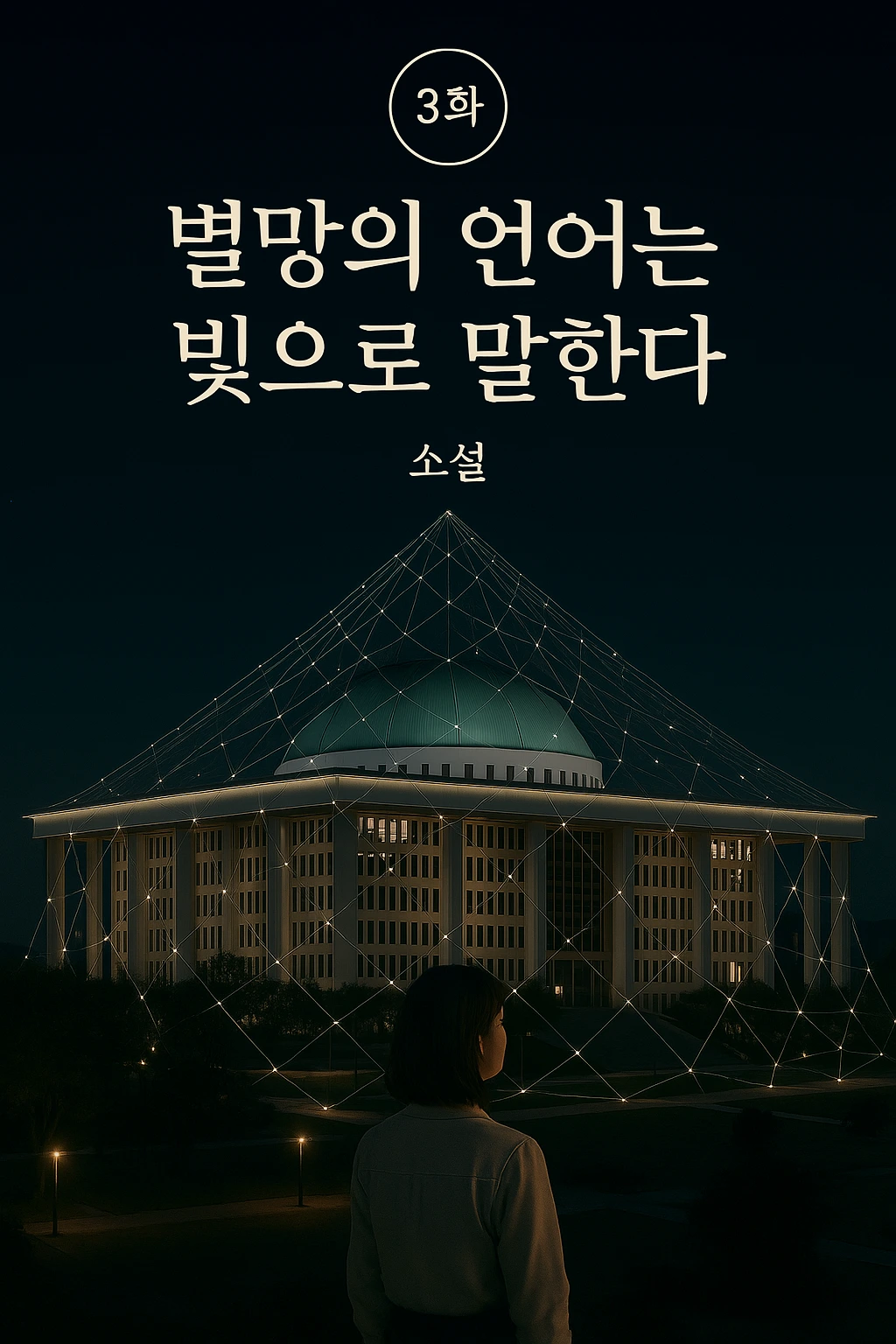 국회 위에 드리워진 이 장막은 민주주의를 감시하는 눈이자, 보호하는 손이며, 다시 써 내려갈 새로운 시대의 서막이다. 국회는 이제 별망 속에서, 투명한 정의와 금빛 책임의 기둥 위에 서 있다.