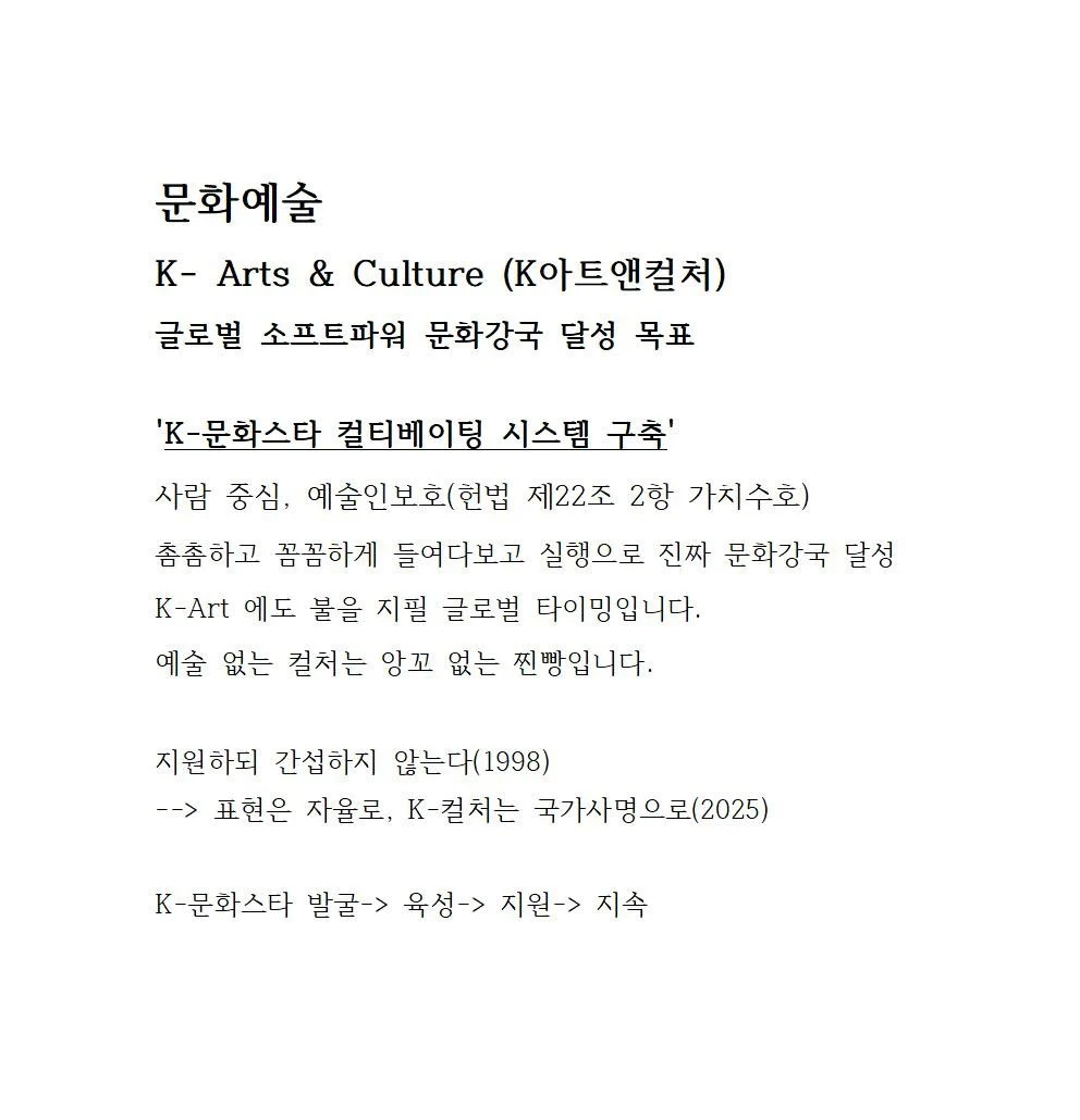 그런 시대, 진짜 리더는 기술과 산업을 보는 안목과 함께 사회를 재설계할 용기를 가진 사람이어야 합니다. 뉴딜급의 대전환 정책이 필요한 지금, 저는 예술이 그 전략의 중심이 될 수 있다고 믿습니다.