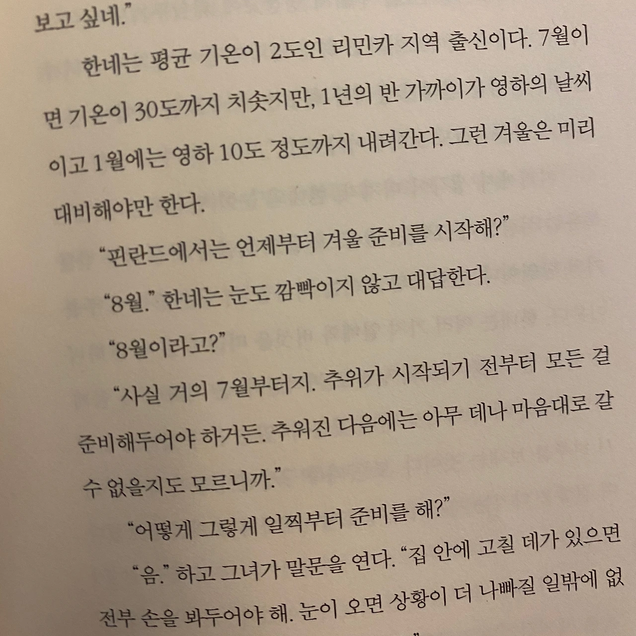 예전에 팀장님이 읽으시는 책을 보고 나도 따라 읽은 적이 있다. 캐서린 메이의 <우리의 인생이 겨울을 지날 때>이다. 겨울마다 한 챕터씩 읽으신다고 하셨다. 윈터링, 식물과 동물들은 겨울을 나기 위해 미리 채비를 한다. 우리 인생에 겨울이 찾아왔을 때 이겨내는 법, 겨울은 언제부터 준비해야 하는 것일까? 최근 내가 했던 고민들은 날씨가 부쩍 추워짐과 동시에 인생에 겨울이 찾아오려고 바람이 불었던 것 같다. 몇 번의 겨울을 나봤기에 이번 겨울은 비교적 빨리 채비를 마칠 수 있었다.