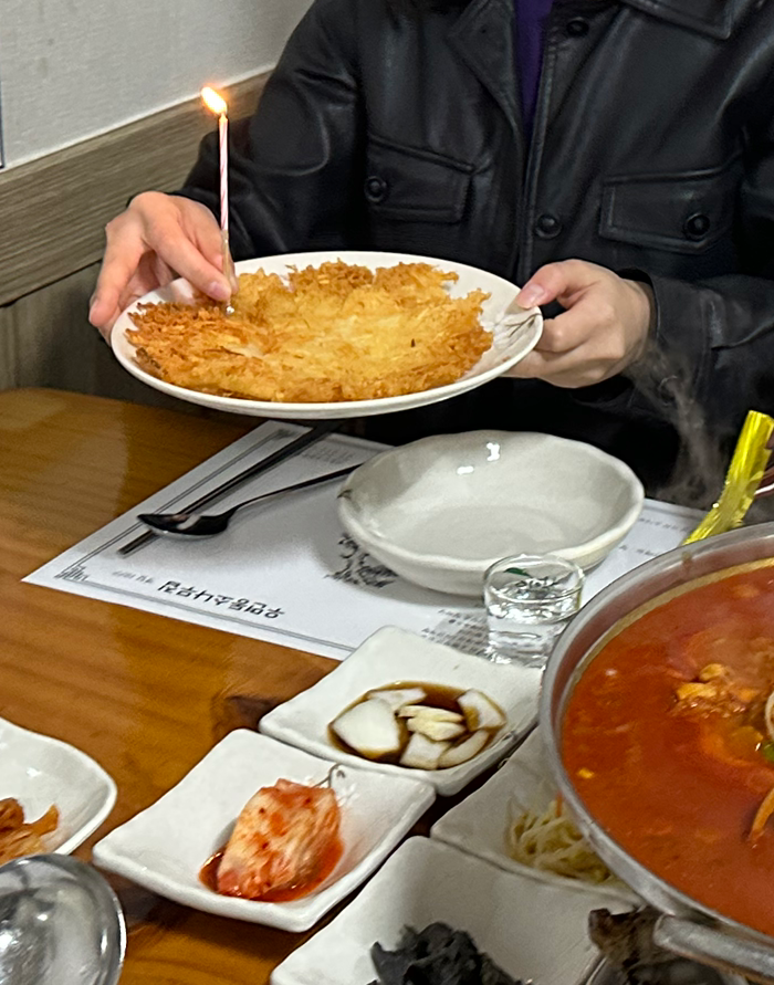 가장 먼저는 가족과 함께한 생일파티이다. 이번 생일에는 축하 자리가 많을 것 같아, 매번 케이크를 먹기보다는 어떤 음식이든 초를 꽂고 케이크로 생각하기로 했다. ‘나락도 락이다’라는 말이 있다. 생각하기 나름이다.