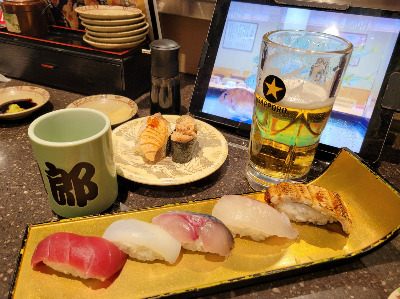 2017년에 왔을 때도 너무 넓어서 길을 헤맷는데 이번에도 마찬가지였다. 먼저, 점심을 먹기위해 한 번 방문한 적이 있는 100엔 스시 식당으로 갔다. 과거에는 기본이 100엔이였는데 지금은 140엔 정도하는 것 같다. 회전 초밥집으로 여러가지 스시와 맥주를 마셨고 계산은 접시의 개수와 색깔로 확인이 되었다. 맥주를 시켜도 접시와 같이 나온다. 지금은 접시를 자동으로 인식하는 기계로 한 번에 금액 계산이 되었고 트래블로그 카드로 계산을 했다.