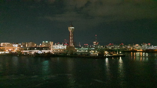 배는 새벽에 이미 후쿠오카항에 도착하여 있었고 우리는 해뜨는 것을 보기위해 선착장으로 갔다. 건물 사이로 해가 떠서 이쁘지는 않았지만 새벽 후쿠오카 하카타항의 야경이 좋았다.