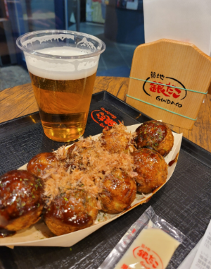 스시집을 나와서 1층의 분수쇼를 잠깐 보고 배는 꽉 찻지만 근처 토고야키 가계가 보였고 들어가서 맥주와 토코야끼 한 접시를 먹었다. 커널 시티 안에 이치란 라멘 집도 있었는데 대기가 많아서 그냥 호텔로 갔다.