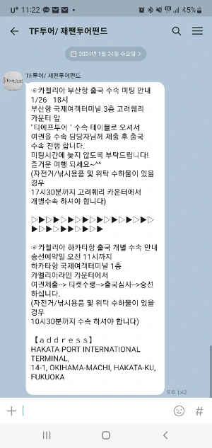 체크아웃하고 나와서 택시를 탔는데 기사 아저씨가 연세가 많아보였다. 그래서 언른 내가 무거운 캐리어를 트렁크에 싣었다. 하카타 여객 터미널에는 10시 30분쯤에 도착을 했고 티켓 카운터는 11시에 오픈이 되었다. 벌써부터 카운터에는 사람들이 모여서 줄이 서 있었고 11시가 조금 안되었는데 카운터가 오픈되었고 같이 온 일행 여권들을 모아서 한 번에 제출하면 티켓을 받을 수 있디. 그리고 2층에서 승선을 하는데 11시 30부터이다. 올 때와 마찬가지로 사람들은 없고 캐리어들만 줄이 서 있었다. 우리도 캐리어를 세워두고 3층 전망대를 구경하고 내려와서 출국수속을 했다.