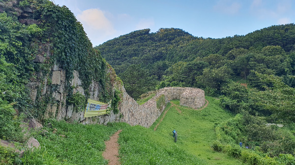 7월 31일 구조라 숙소에 1박 하고 8월 1일(화) 새벽에 일어나서 짧게 산책을 하였다. 숙소에서 나와 구조라 성을 지나 수정산 전망대에 올랐다. 구조라 성은 실제 성은 아니고 성벽만 남아 있는데, 최근에 다시 성벽을 올린 것 같았다.