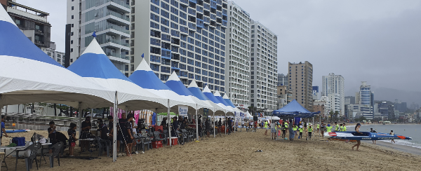 부산지역의 SUP 클럽뿐만 아니라 여주 등 타 지역의 클럽에서도 참석하여 각자의 부스에 현수막과 깃발을 두고 참가 준비를 하고 있었다.