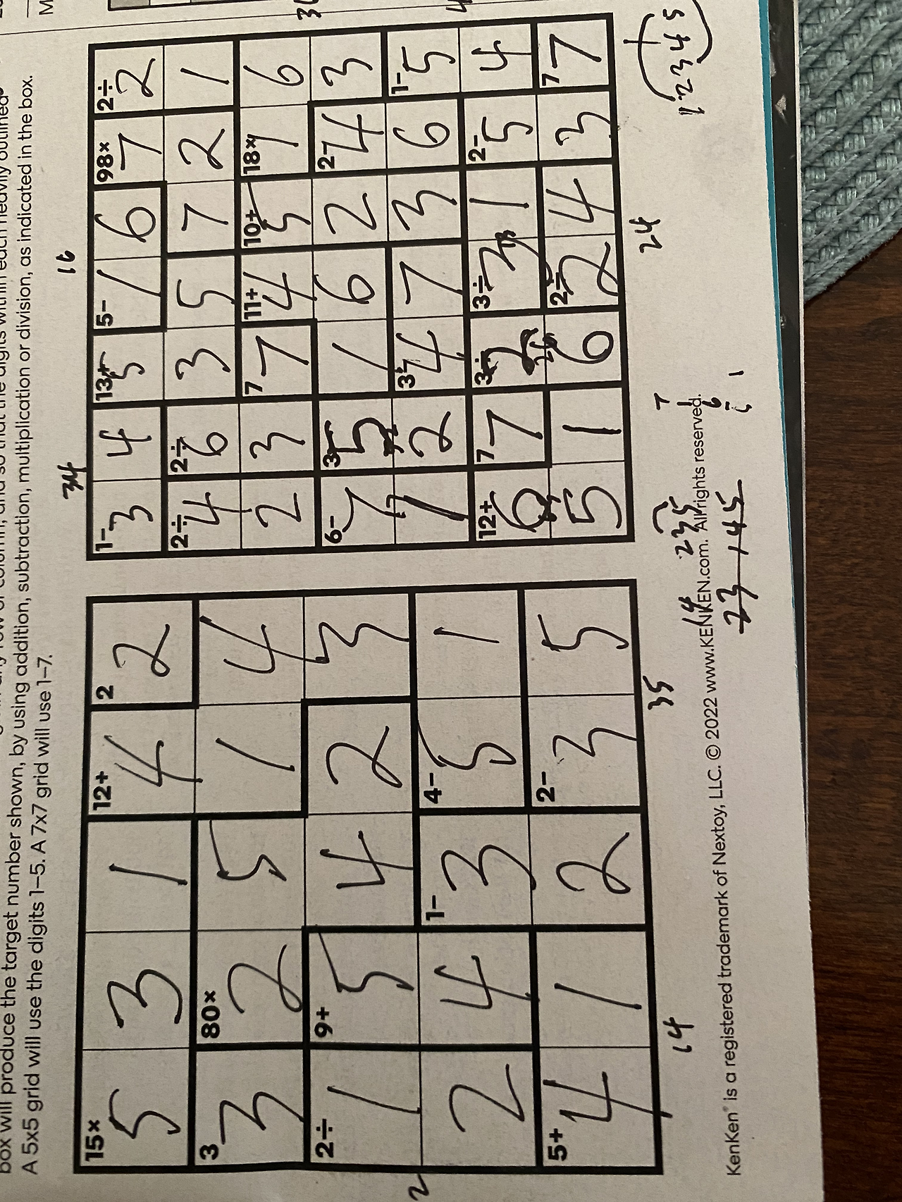 문제가 두개다. 5x5 와 7x7. 물론 7x7이 더 어렵다. 5x5는 쉽다. 난, 7x7 을 먼저 푼다. 언제나 그랬던 듯 싶다. 쉬운 문제와 어려운 문제를 동시에 맞닿으면, 어려운 문제부터 풀려고 했다. 어려운 문제를 풀 수 있으면 쉬운 문제는 쉽게 푸니까.