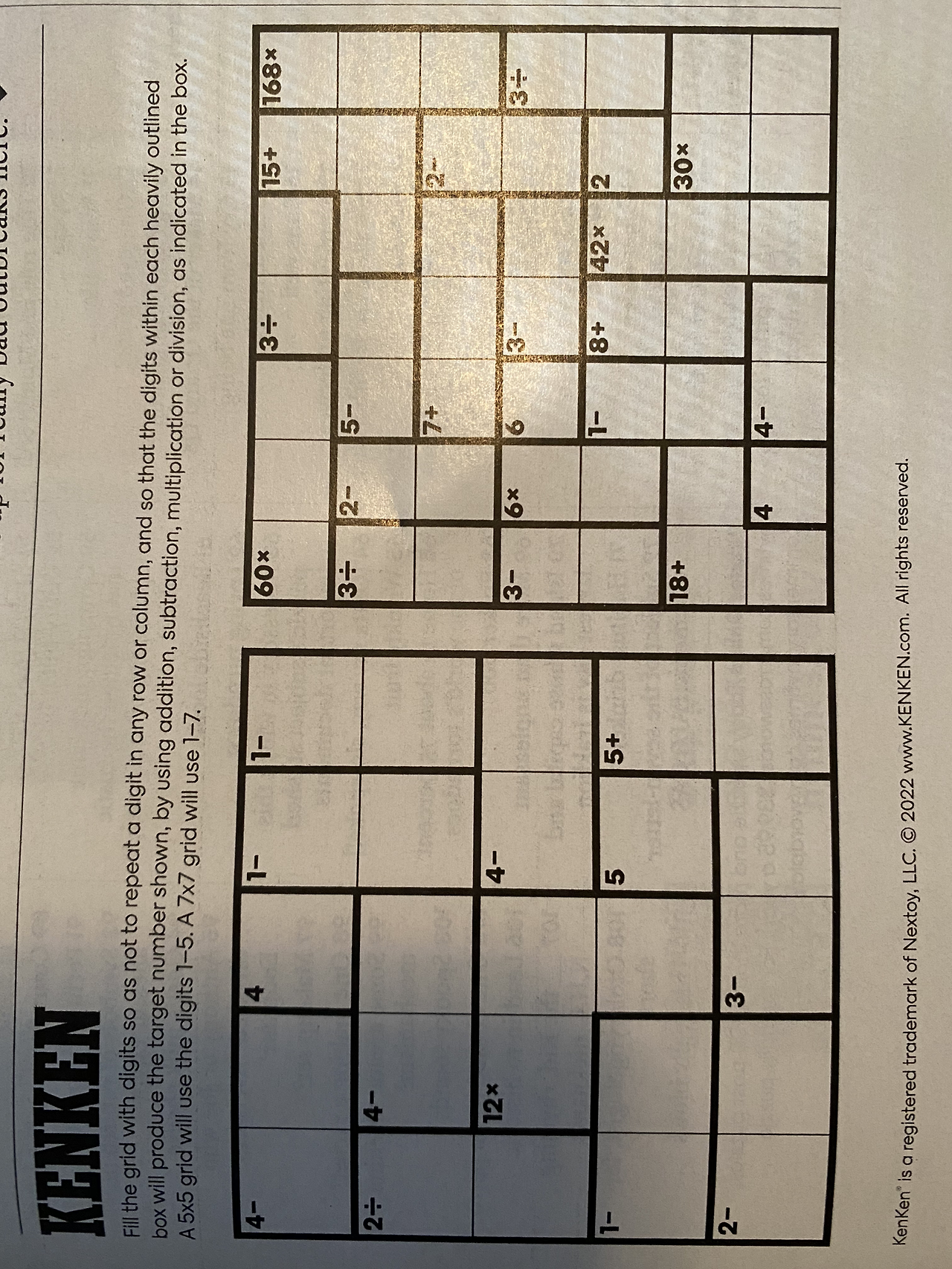오늘 뉴욕타임스에 실린 kenken 이다.