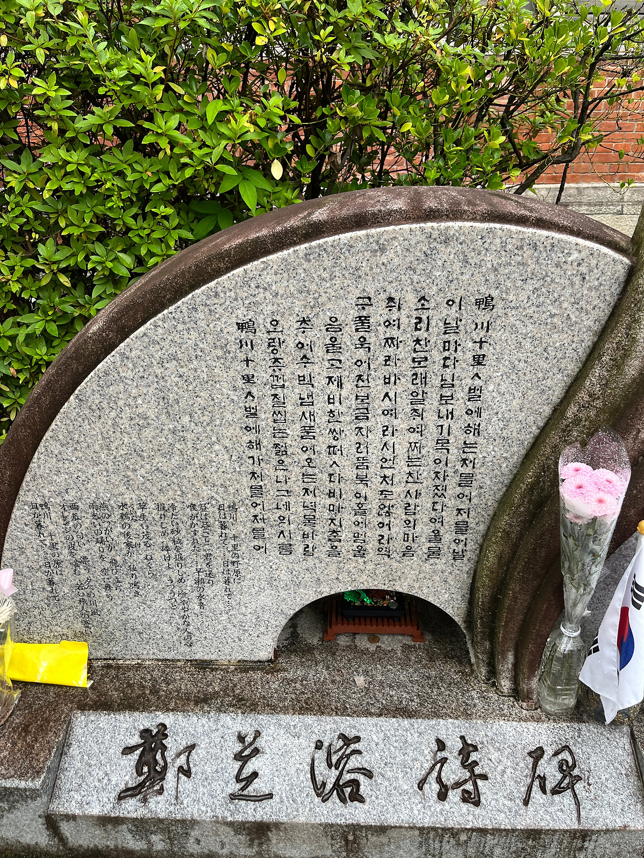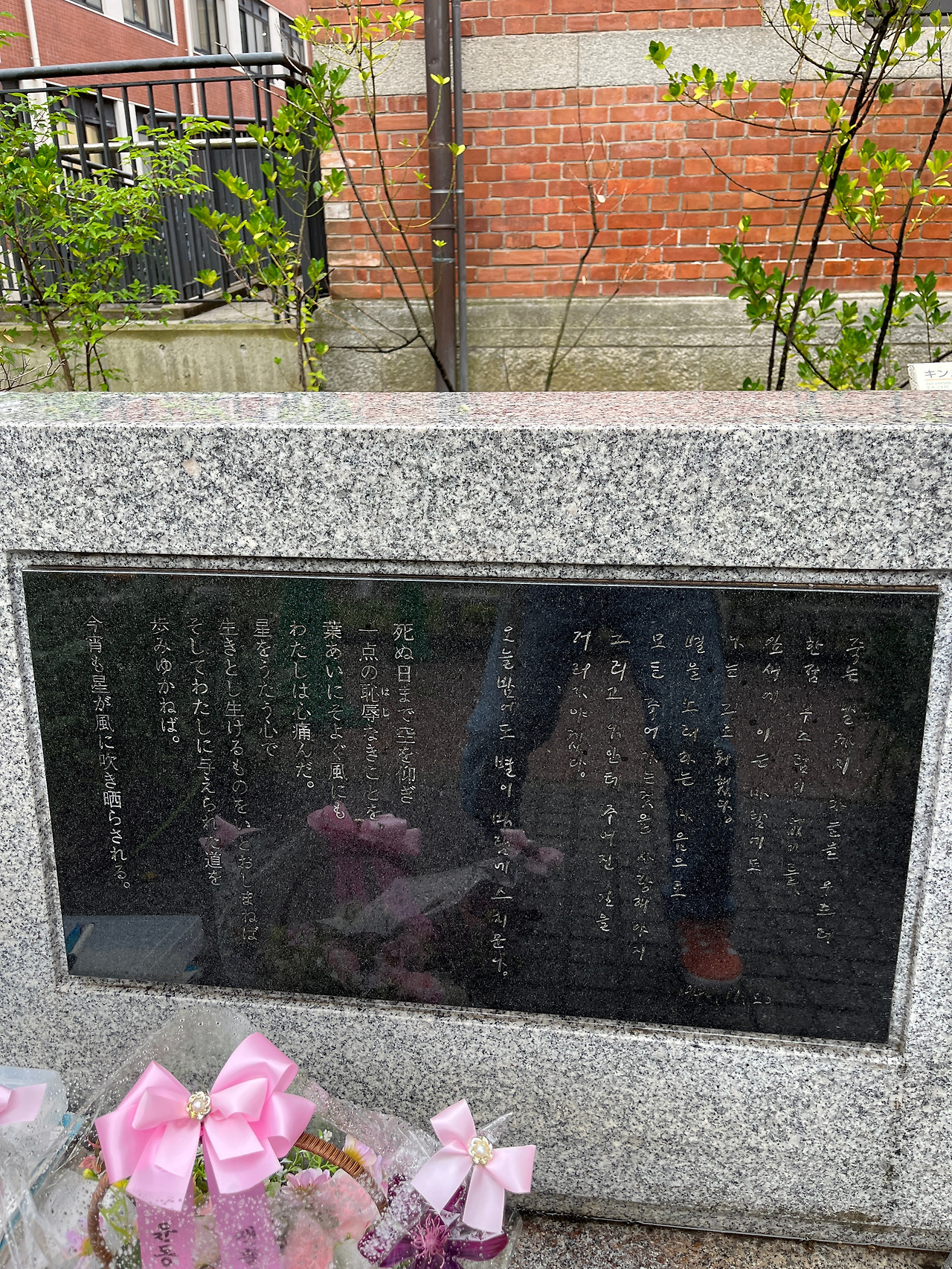 이 두 시인의 시비를 세운 사람들은 일본인들이었다. 아마, 도시샤대학출신들이리라. 그 일본인들에게 깊은 감사를 드린다.