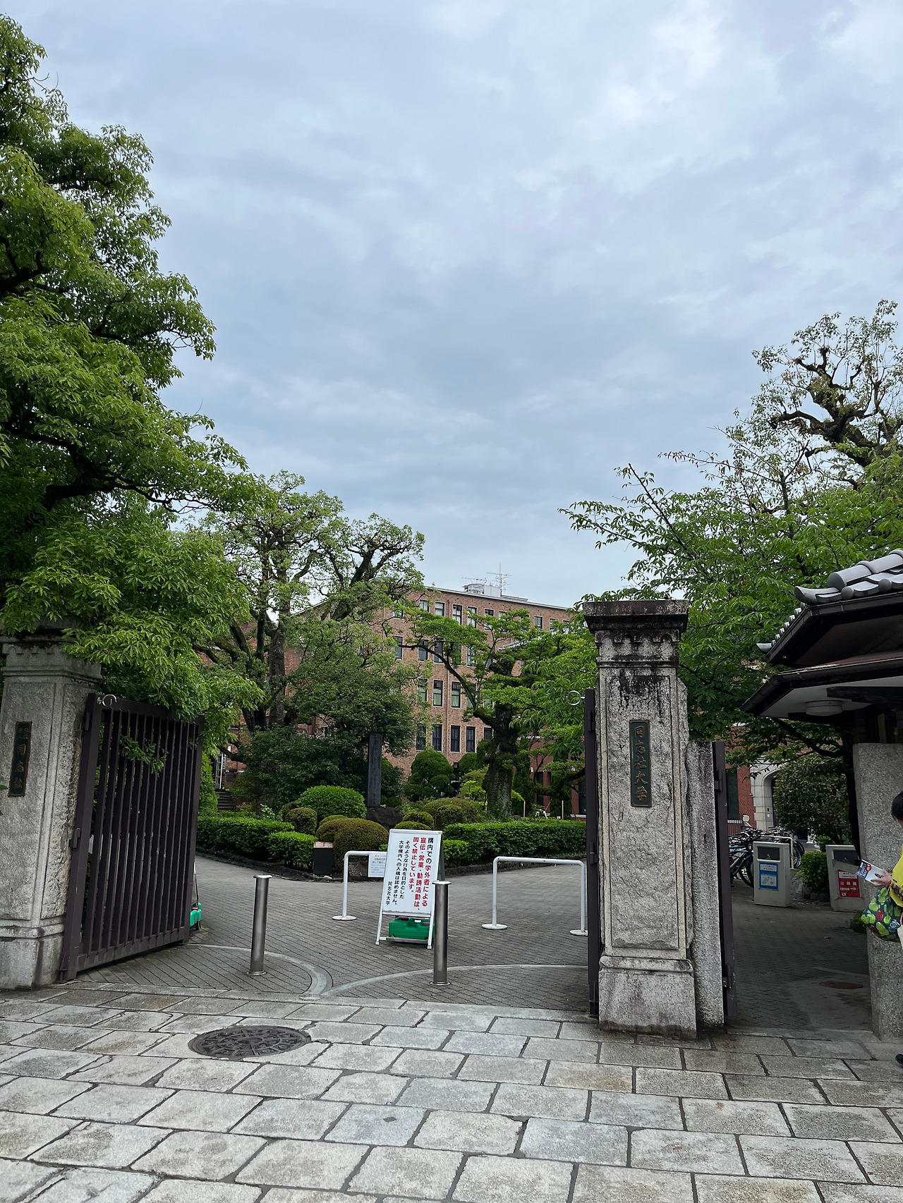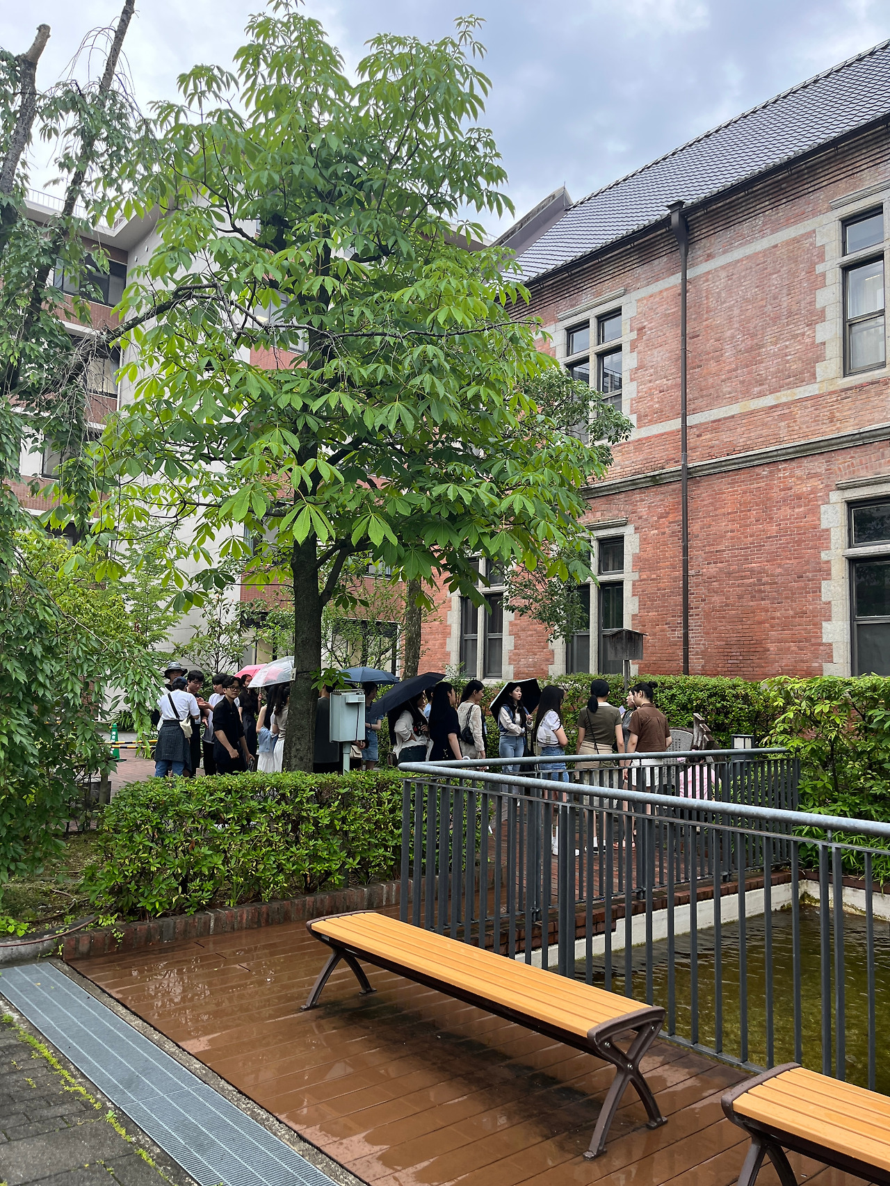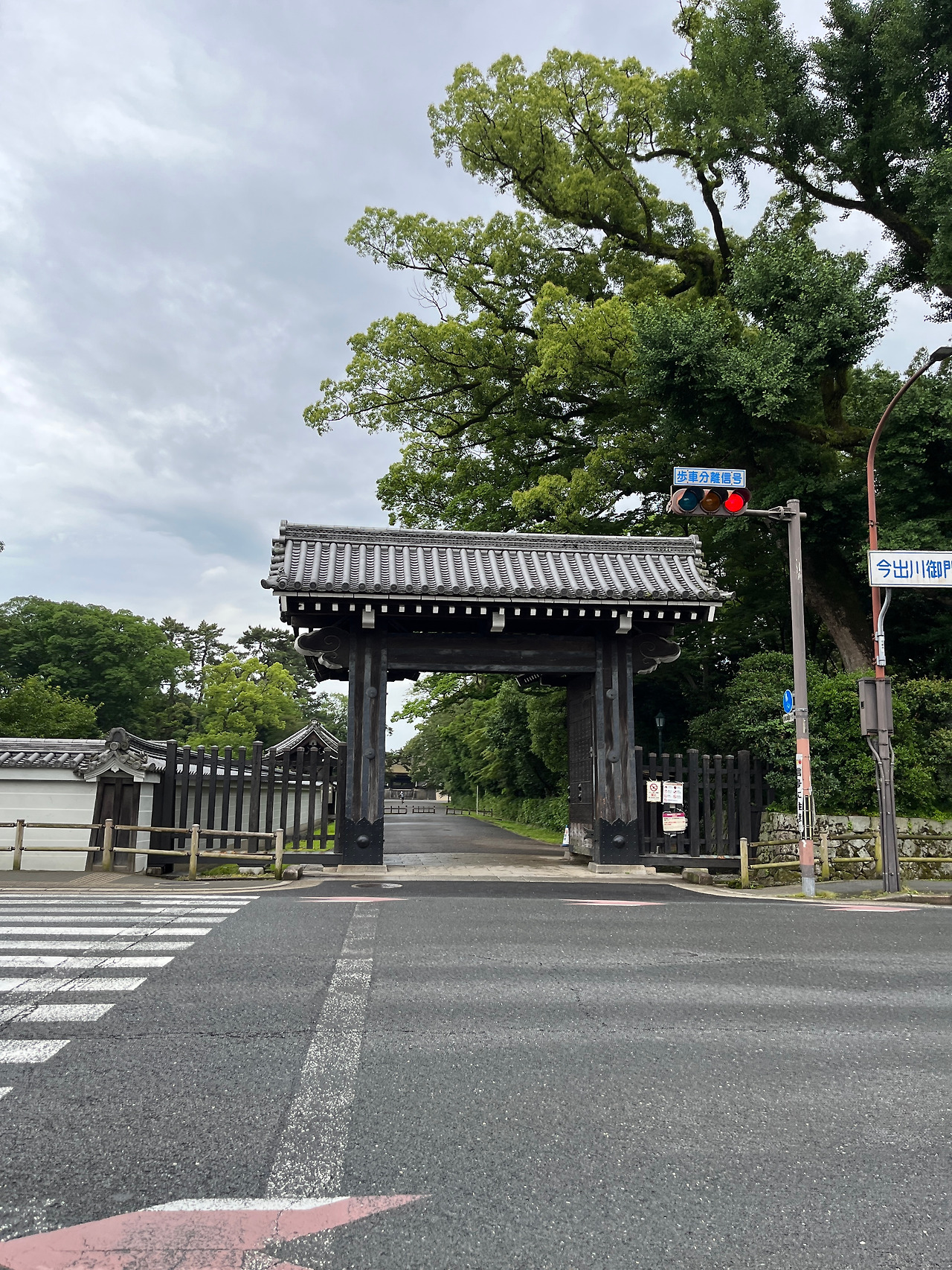 정원에 들어가지 않고 같은 길을 계속 걸어 교토정원 북(?)문에 다달으면, 그 문에서 길 건너편에 도시샤대학 정문이 보인다.