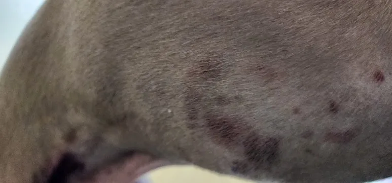 '피부에 뭐가 난 건가? 긁혔나?' 하지만 단순한 피붓병으로 보기엔 멍이 너무 진하고 많아서 공포스럽기까지 합니다.