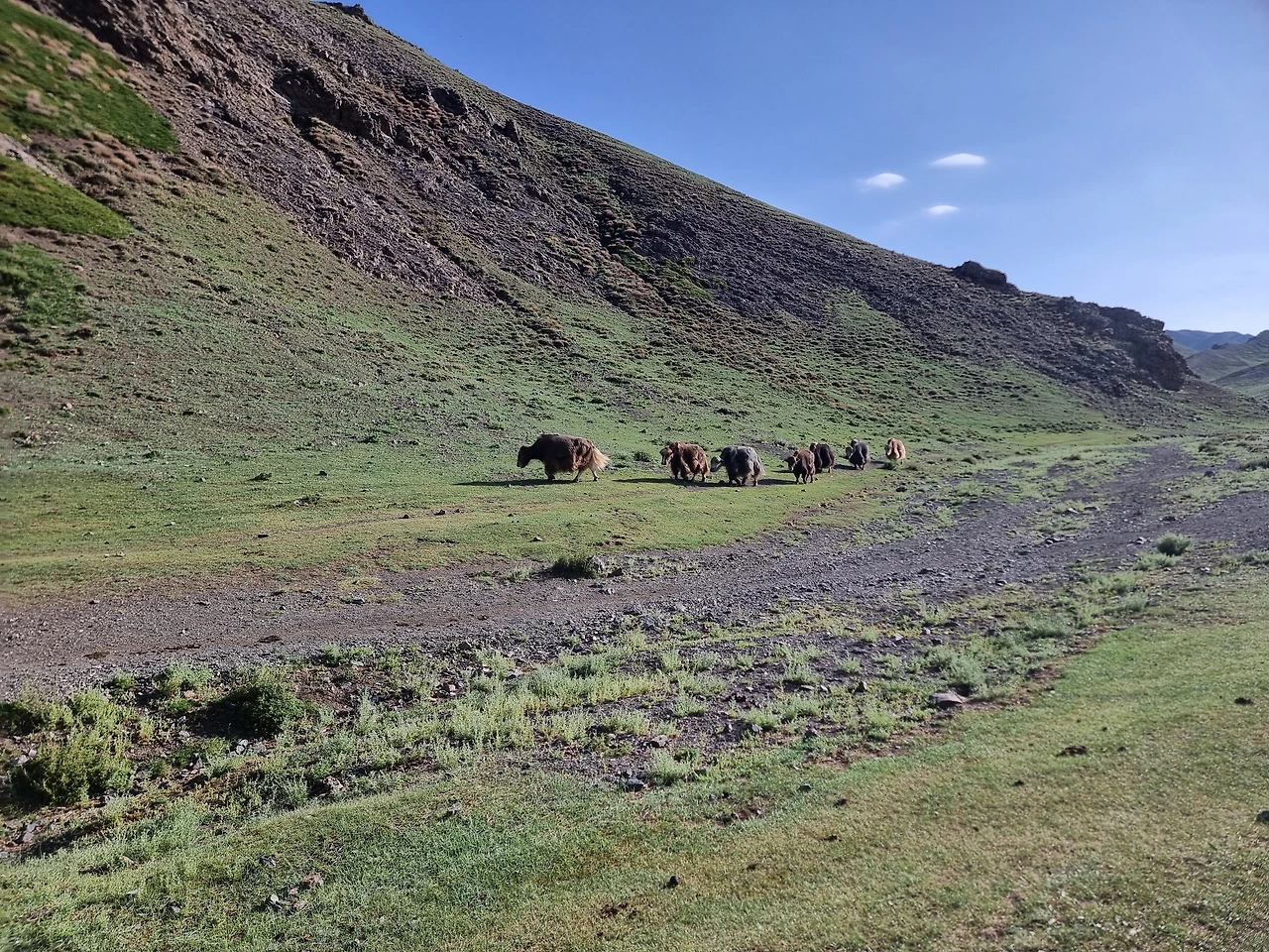 풍문으로만 전해 듣던 윈도우 바탕화면 속으로 들어왔다. 이쯤 하니 몽골의 자연을 예찬하는 문장을 쓰는 것도 지겨울 정도지만, 매일 감탄만 해도 시간이 부족한 곳이다. 몽골은 매일 널따란 도화지를 다른 색으로 물들이는 듯했다. 도착 첫날 울란바토르는 노란빛, 어제의 차강 소브라가는 붉은빛이었다면, 지금은 온 세상이 푸르다.