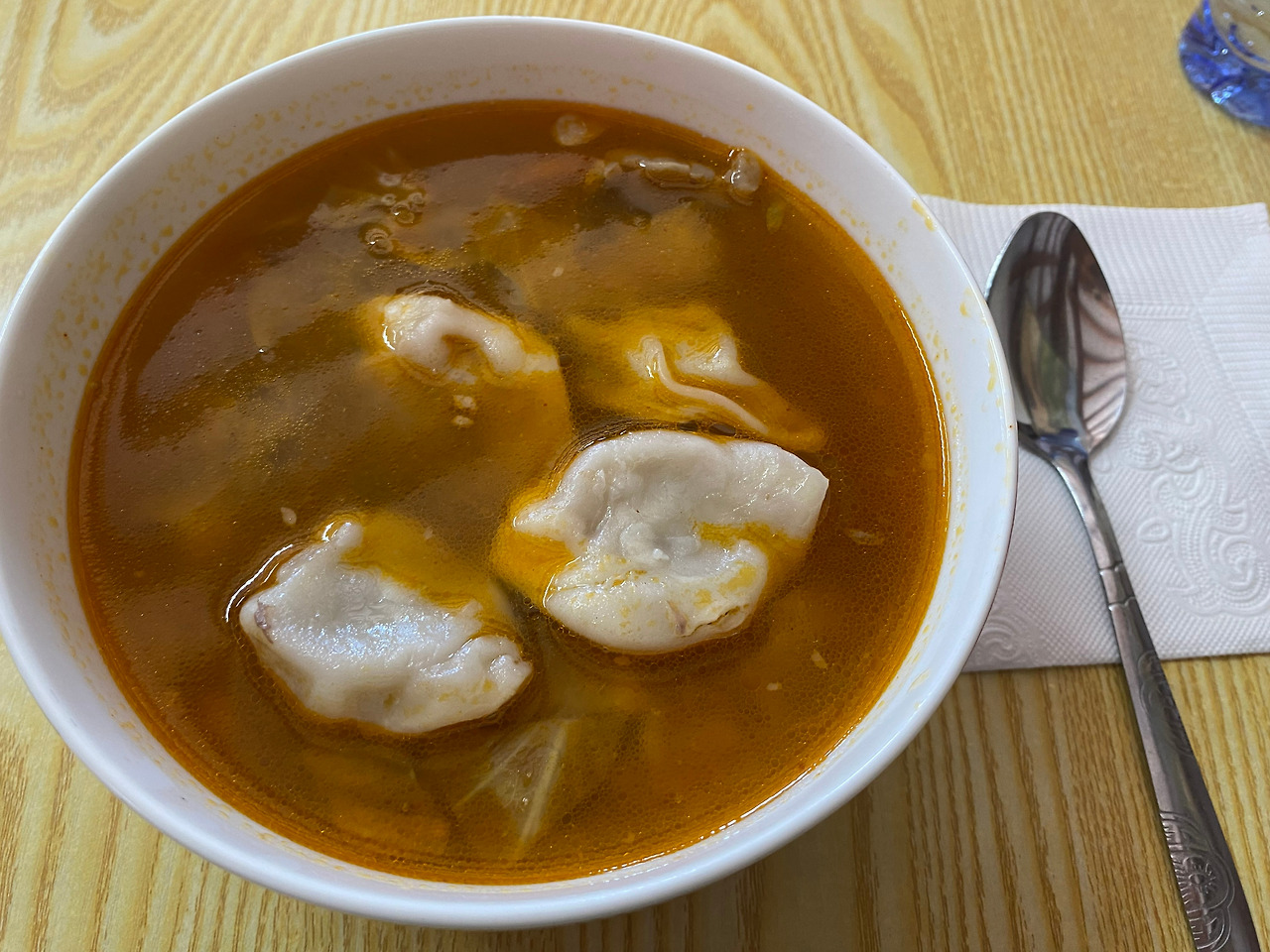 더위에 미각을 잃어버린 사람이 나 혼자는 아니었나 보다. 점심 메뉴로 입맛을 확 돌게 해줄 매운 음식이 나왔다. '반쉬'라 불리는 이 메뉴는 작은 만두가 들어간 양고기 탕인데, 우리나라로 치자면 만둣국과 굉장히 비슷하다.
