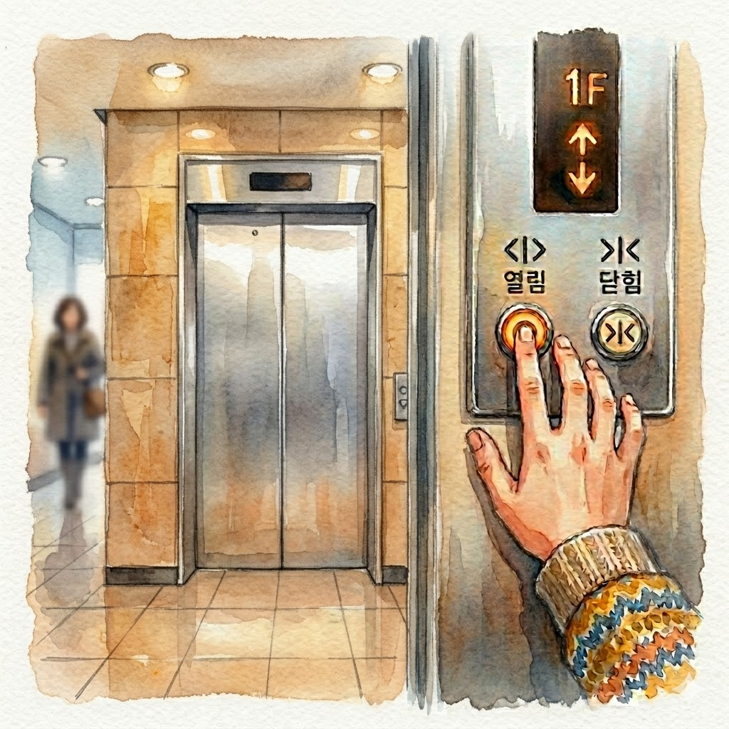"엘리베이터 탔을 때도 누가 오는 것 같다 그러면 이렇게 열린 버튼을 눌러서 다른 사람을 기다려준다든가... 초등학교 때 OO이는 아니구나."