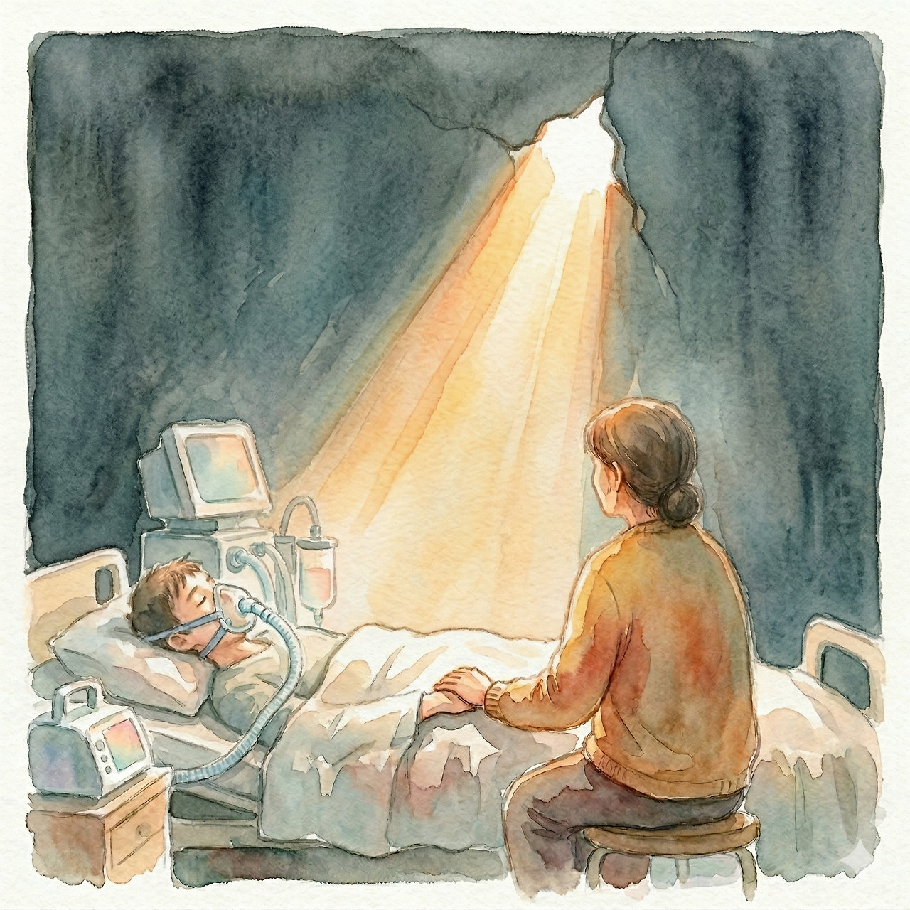 보통의 슬픔은 시간이 지나면 수용에 이릅니다. 그러나 이 어머니의 슬픔은 끝나지 않습니다. 아이가 처음 눈을 감던 날, 처음 혼자 숨을 쉬지 못하게 되던 날, 또래 아이들이 졸업식을 하는 날, 성인이 되어도 기저귀를 채워야 하는 날, 상상했던 아이의 삶을 계속해서 잃어야 하기 때문입니다. 이 슬픔은 수용되지 않고, 파도처럼 반복해서 밀려옵니다. 이분이 나약해서가 아니라 이것이 이 슬픔의 본래 구조입니다.