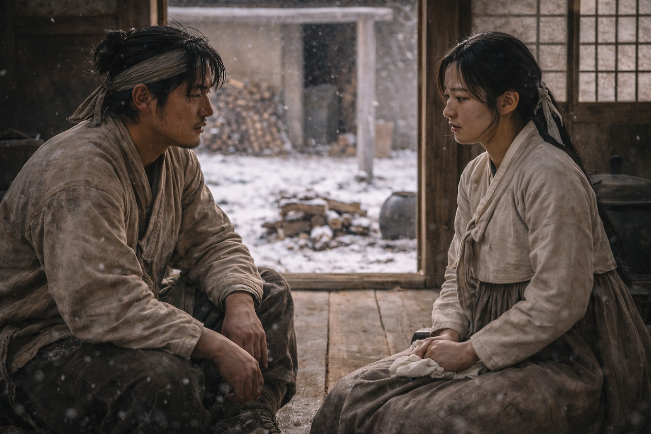 양순은 손에 들고 있던 바늘을 떨어뜨렸다. 그 얼굴은 기쁨도 슬픔도 아니었다. 그저 두려움에 가까운 창백함이었다.