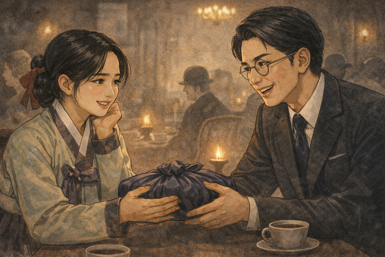 식당 안은 만덕이 평생 보지 못한 세계였다. 서양식 의자, 커피 향, 양복 입은 사람들… 그리고 코 높고 머리 색이 다른 양인들까지. 가슴이 쿵 하고 내려앉고 머리칼이 쭈뼛 서는 느낌이었다.