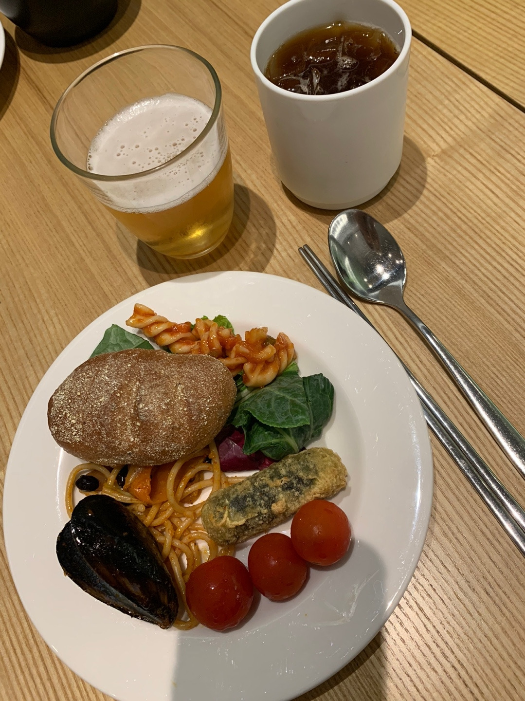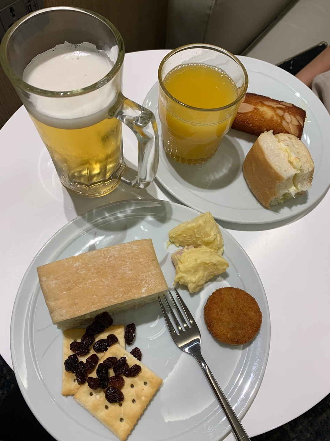 공항에 생각보다 사람이 적다 했는데 알고 보니 모두 여기 들어와 있었나 보다. 빈자리가 많이 없을 정도로 사람들이 많았다. 배가 고프진 않았기에 음식은 맛만 보고 나는 맥주 한잔 더~딸이 “엄마 또 맥주?”한다. 하지만 나는 속으로 ‘비행기에서는 와인도 마실 건대~’ 했다.