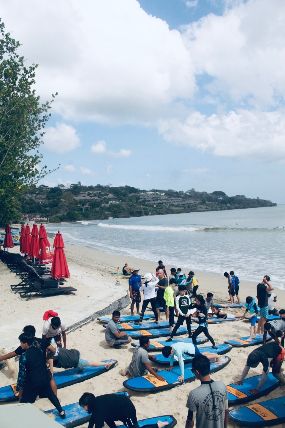 호텔 근처 짐바란 비치라는 곳으로 두 그룹으로 나누어 교대로 서핑을 하러 갈 예정이라 아침부터 비치웨어를 입히고 갈아입을 옷을 따로 챙겨 보내라고 단톡방에 공지가 올라왔다.
