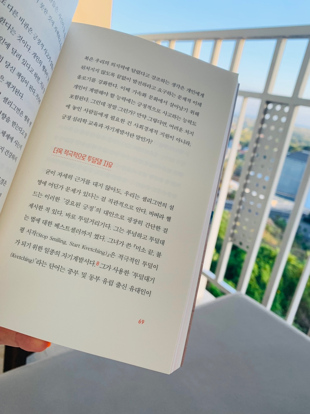 오늘 아침 아니 새벽에 근처 사원에서 울려 퍼지는 요상한 주문 소리에 일찍 잠이 깨는 바람에 아이를 깨우기 전 테라스에 나가 떠오르는 햇빛을 벗 삼아 모닝 독서를 했는데 그 시간이 너무 좋았다. 이제 어느 정도 발리 생활에 적응을 했으니 앞으로 남은 날 동안 모닝 독서를 나의 루틴으로 추가해야겠다.