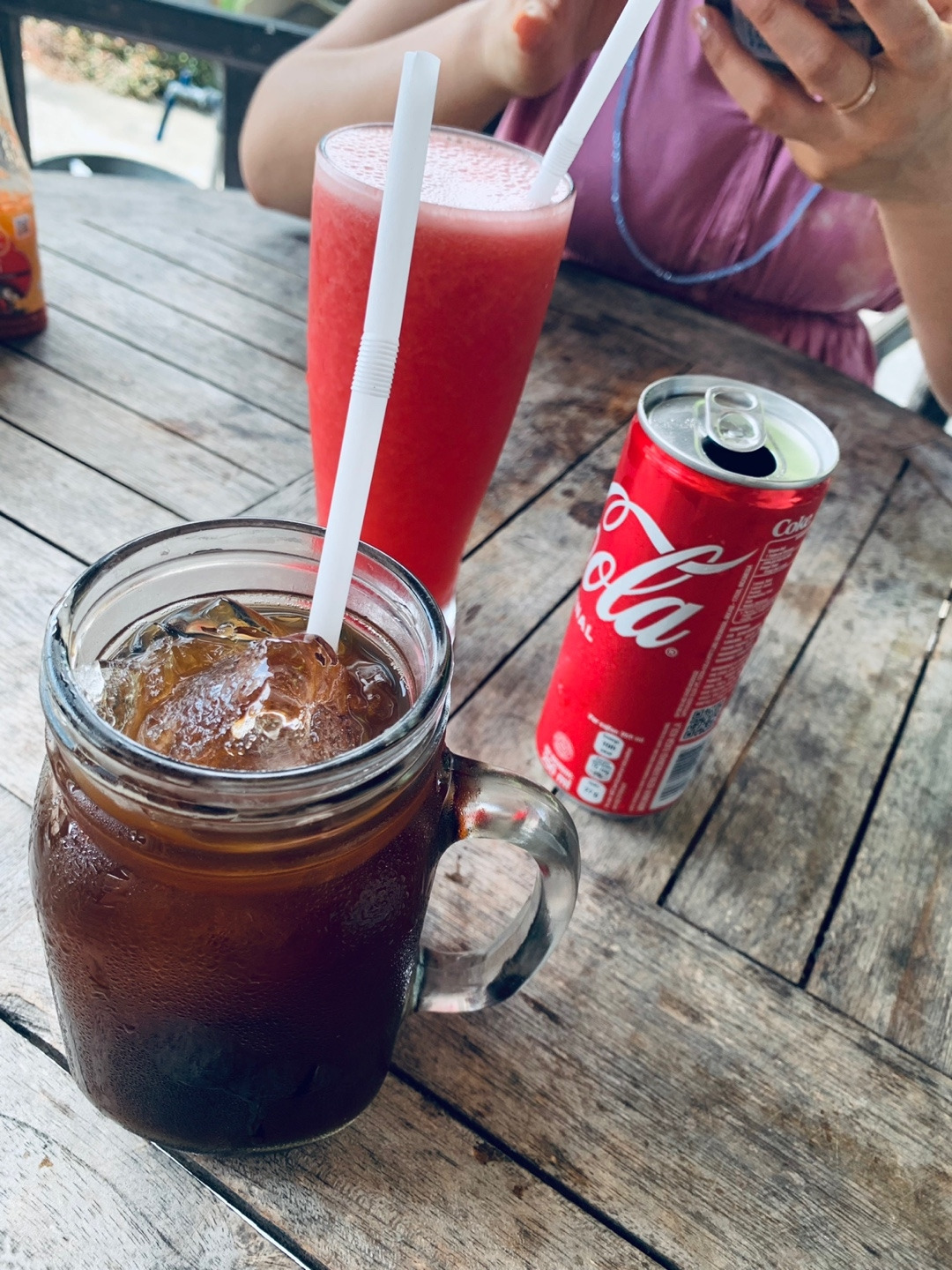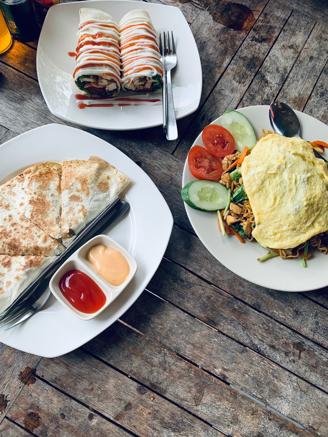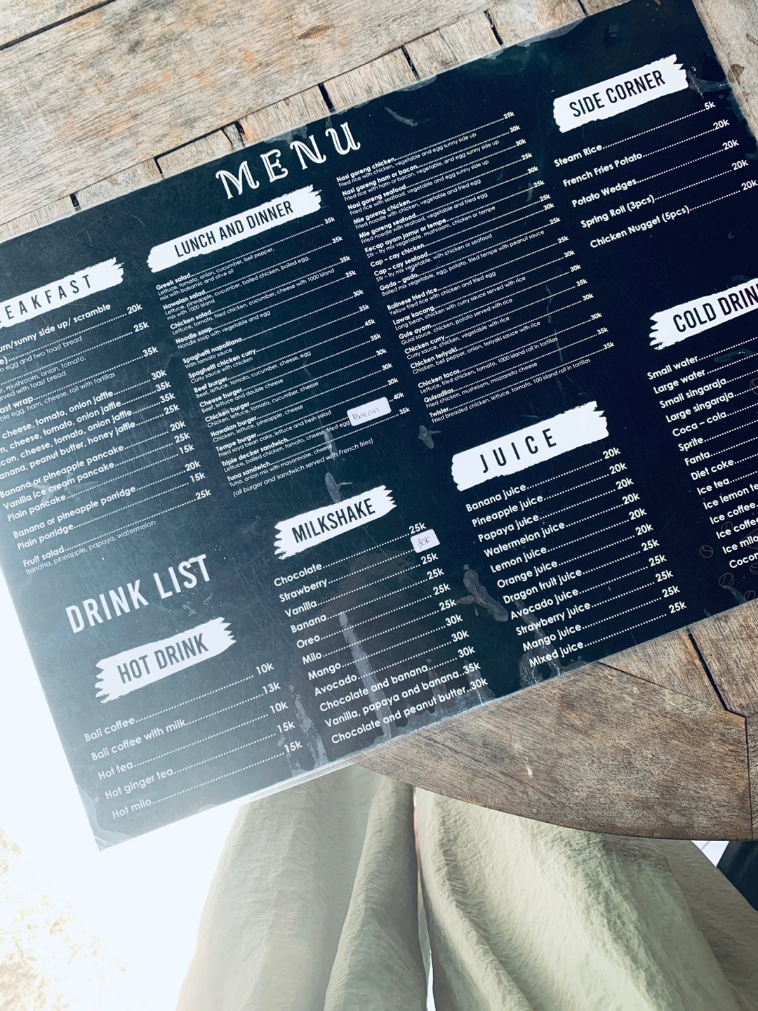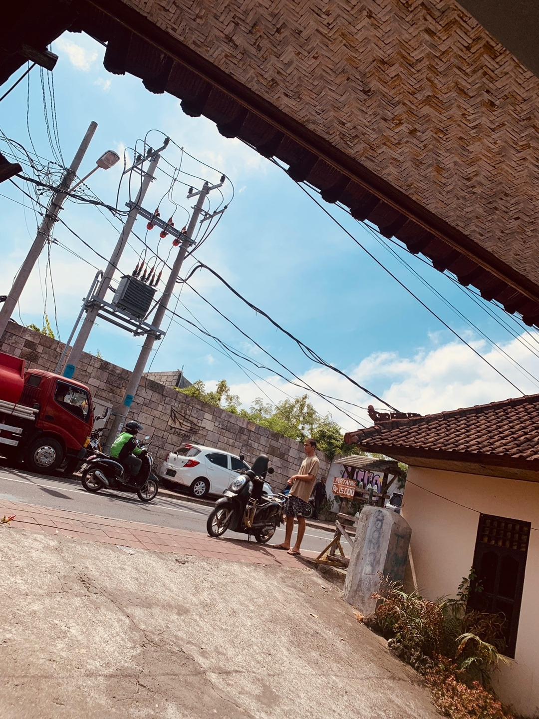 그 윤슬 덕분에 모두들 마음이 말랑말랑 해져서였을까. 우리는 구글링 없이 택시를 타고 오는 길에 보였던 길가의 음식점 중 한 곳에서 점심을 먹기로 하고 무작정 아까 내려왔던 계단을 다시 올라갔다. 위로 올라와 바로 처음 보이는 곳으로 들어가 자리를 잡고 음료 3개, 음식 3개를 주문했다. 결과는 대만족. 특히 가격 대비 엄지 척! 셋이서 배부르고 만족스럽게 먹었는데 135,000 루피아(한화 약 12,000원) 라니. 그래 이런 맛에 동남아 오는 거지.