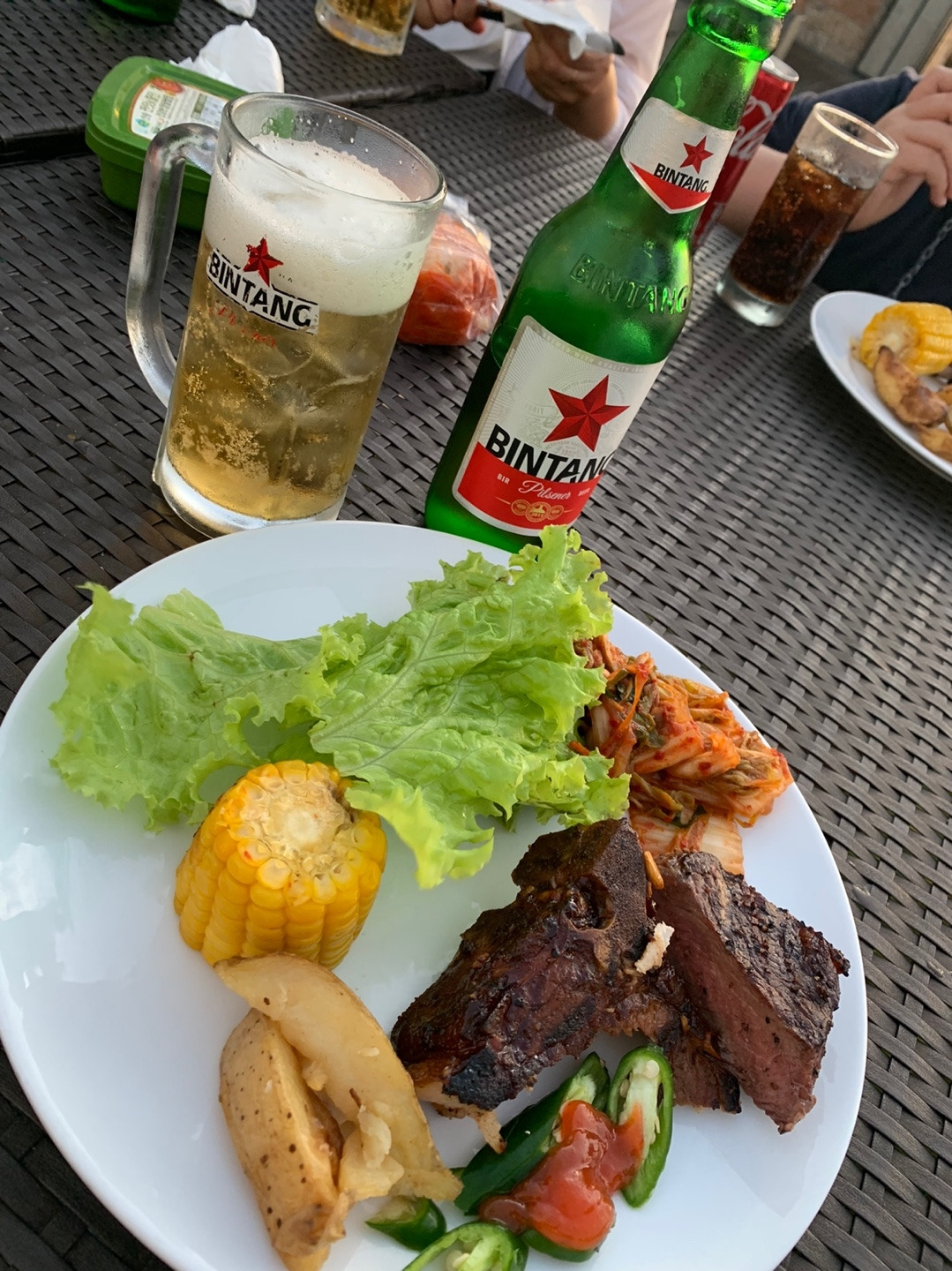 저녁에는 호텔 5층 정원에서 바비큐 파티가 있었다. 닭고기를 제외한 소고기와 돼지고기는 질겼지만, 김치와 상추쌈과 쌈장과 고추에 만족해하며 오랜만에 저녁 메뉴에 대한 걱정 없이 빈땅을 배불리 먹으며 가벼운 수다를 떠는 시간이었다.