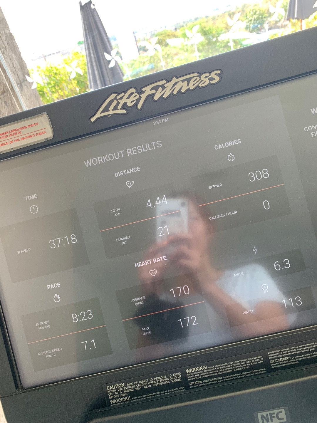 딸이 수업에 들어간 후, 나는 뭘 할까 잠깐 고민을 했다. 고젯으로 택시를 불러 근처 몰에 가서 스타벅스 커피라도 먹고 올까 하다가 약간 더부룩한 속을 진정시키기 위해 5층에 있는 gym으로 가보았다. 러닝머신 4개 정도와 몇 가지 기구들이 있는 아담한 곳이었다.