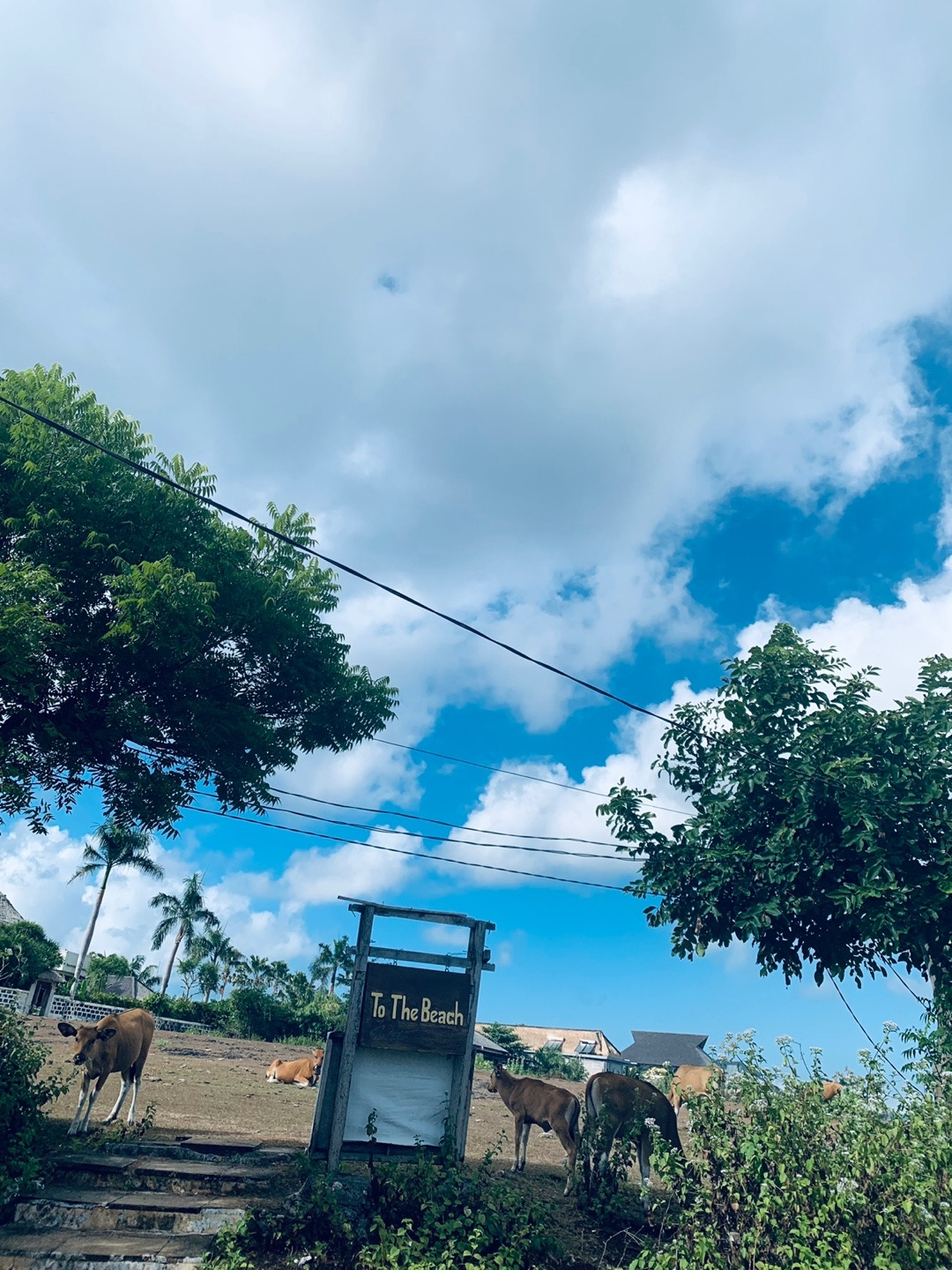 숙소에서 발랑안 비치를 가는 길은 그동안 다녔던 곳보다 조금 더 고불고불하고 좁은 길을 계속 계속 지나가야 나오는 곳이었다. 도로에 누워있는 개들도 유독 더 많았고, 비치에 가까워지자 도로에 닭들도 막 지나다니는 풍경이 뭔가 신기하고 귀엽고 재밌기까지 했다.